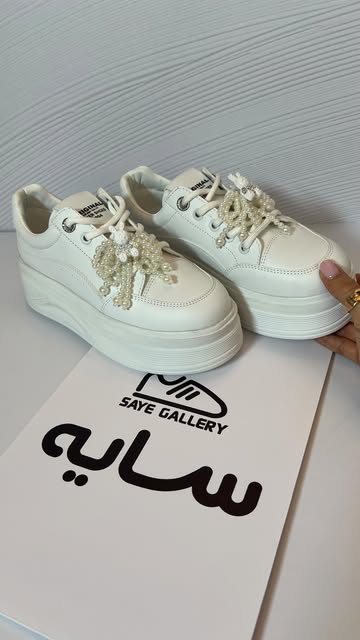 کتونی لژدار دخترونه ، رنگ بندی کرم ومشکی ، لژ بلند ۷ سانت
