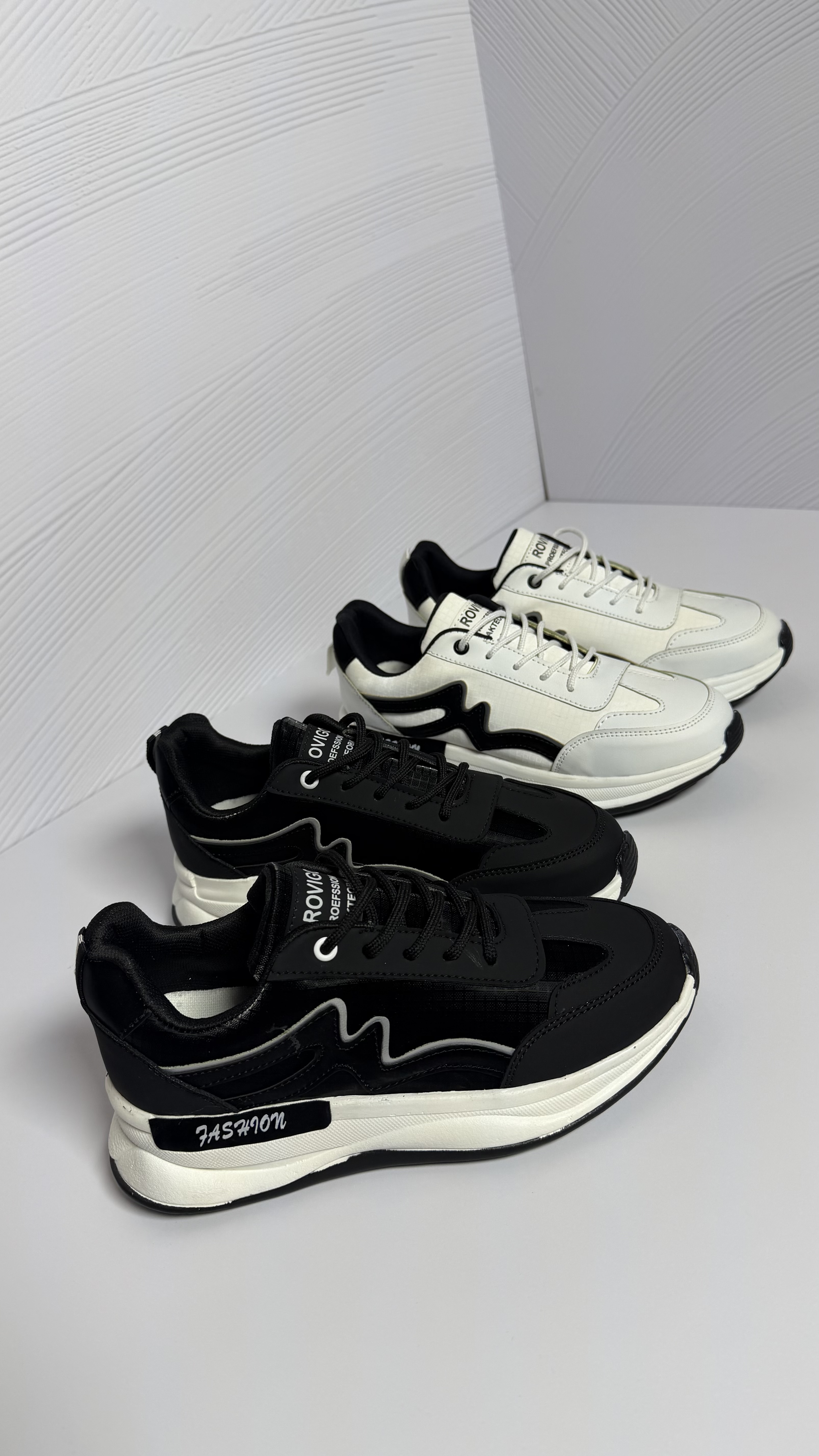کتونی فشن دخترونه ، رنگ مشکی وسفید ، سبک و خوش پا و استایلیش