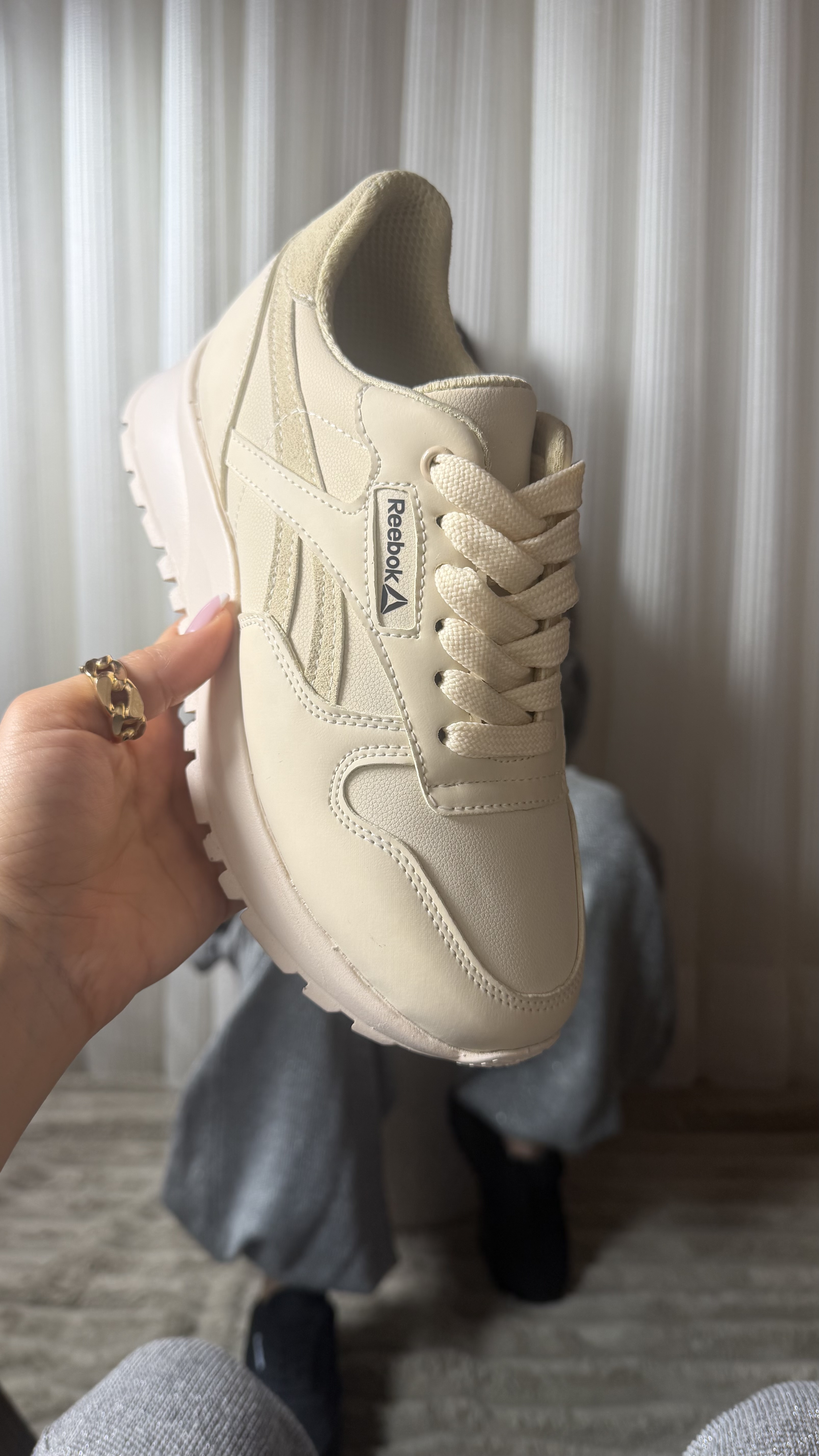 کتونی دخترونه reebok رنگ مشکی و کرم ( راحت و جذاب)
